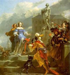 Keywords: Berchem 65Moor.jpg Artwork creator Nicolaes Pietersz Berchem A Gallant Company on a Quayside <ref name RKD >http //www rkd nl/rkddb/dispatcher aspx action search database ChoiceImages search priref 2209 RKDimages Art-work number 2209 title translated by Wikimedia Commons </ref> Elegant gezelschap op een havenkade <ref name RKD >http //www rkd nl/rkddb/dispatcher aspx action search database ChoiceImages search priref 2209 RKDimages Kunstwerknummer 2209 </ref> Alternate titles Othello and Desdemona old title <ref name RKD /> Othello en Desdemona oude titel <ref name RKD /> ~ 1655 1653-1667 oil canvas cm 93 7 89 Wadsworth Atheneum bottom right NBerchem / F object history by 1900 acquisition Jan Six Amsterdam ProvenanceEvent 1928-10-16 sale Jan Six Frederik Muller Amsterdam by ca 1930 Galerie Dr Schäffer Berlin acquisition P de Boer art dealer Amsterdam ProvenanceEvent 1961 acquisition Wadsworth Atheneum Hartford Connecticut avaxsphere com http //avaxsphere com Home http //avaxsphere com/graphics/gallery/ArtbyNicjhkjhola html Info 1961 29 Other versions PD-old-100 LangSwitch Referenzen References Noten <references /> Paintings by Nicolaes Pietersz Berchem 1655 1650s oil on canvas paintings in the United States Parrots in paintings People with parrots in art People with dogs in art People with birds in art Paintings in the Wadsworth Atheneum Berchem People with sculptures in art People standing on stairs in art Pets in art Africans in 17th-century art Jan Six |