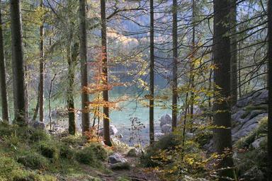 Keywords: berchtesgaden ramsau hintersee bavaria upper bavaria lake berchtesgaden national park water mood panorama forest trees