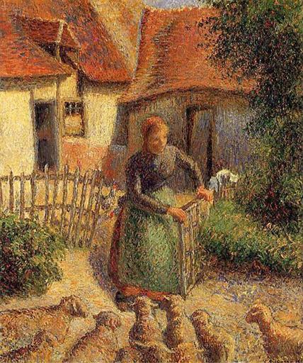 Keywords: Bergère rentrant des moutons.jpg Artwork creator Camille Pissarro en One of Pissarro's first paintings in the Neo-impressionist or pointillist style 1886 oil canvas cm 46 38 Fred Jones Jr Museum of Art place of discovery object history acquired 2000 exhibition history credit line accession number 2000 013 013 place of creation Fred Jones Jr Museum of Art PD-old-100 Q22115548 Paintings of peasants by Camille Pissarro 1886 1886 paintings by Camille Pissarro Paintings of women from France People with brown background Three-quarter views of people Sleeves Pointillism |