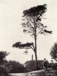 Keywords: Berlin Mueggelturm 1900 mit Radfahrer.jpg Originalbeschreibung Alte Föhre am Müggelsee mit Blick auf den Müggelberg Rund um Berlin Globus Verlag Berlin ca 1900 Author PD-old Müggelturm