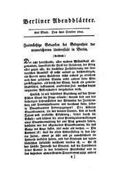 Keywords: Berliner Abendblätter 1810 015.jpg Berliner Abendblätter Berlin Julius Eduard Hitzig Berliner_Abendblätter_1810_ jpg 014 016 http //www presse uni-wuerzburg de/einblick/abendblaetter/ 1810-1811 Heinrich von Kleist Author died more than 70 years ago - public domain PD-old-100 Berliner Abendblätter |