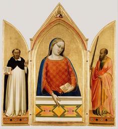 View Original:Bernardo_Daddi_(Italian_(Florentine)_-_Madonna,_Saint_Thomas_Aquinas,_and_Saint_Paul_-_Google_Art_Project.jpg (3576x3905)