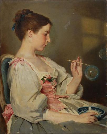 Keywords: Bernhard Zickendraht - Junge Frau mit Seifenblasen (1881).jpg 1881 Oil on canvas cm 81 64 accession number object history credit line exhibition history signature and date http //katalog auktionshaus-wendl com/de/i/2427845/p/42/ PHPSESSID l8thf3n8jv858l3clf266pqf33 Auktionshaus Wendl März 2007 Auktion 57 Kat Nr 4684 <gallery>Chaplin-Blowing Bubbles jpg a similar painting by Charles Joshua Chaplin Charles Chaplin </gallery> PD-old-auto-1923 1937 Bernhard Zickendraht 19th-century paintings location missing 1881 genre paintings 19th-century oil paintings of sitting women at half length 19th-century portraits of girls at half length Soap bubbles in art Women facing right and looking right |
