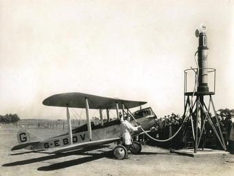 Keywords: parafield aerodrome adelaide south australia southaustralia 1928 bert hinkler berthinkler avro avian cirrus aviancirrus aeroplane vintage fuel petrol shell pioneer aviator cru årgang jahrgang vendimia outdoor Born in Bundaberg, Queensland, Herbert John Louis Hinkler AFC DSM (8 December 1892 – 7 January 1933), better known as Bert Hinkler, was a pioneer Australian aviator (dubbed "Australian Lone Eagle") and inventor. He designed and built early aircraft before being the first person to fly solo from England to Australia, and the first person to fly solo across the Southern Atlantic Ocean. This is his plane "Avian Cirrus" being re-fuelled at the Parafield Aerodrome in Adelaide, South Australia in 1928. Born in Bundaberg, Queensland, Herbert John Louis Hinkler AFC DSM (8 December 1892 – 7 January 1933), better known as Bert Hinkler, was a pioneer Australian aviator (dubbed "Australian Lone Eagle") and inventor. He designed and built early aircraft before being the first person to fly solo from England to Australia, and the first person to fly solo across the Southern Atlantic Ocean. This is his plane "Avian Cirrus" being re-fuelled at the Parafield Aerodrome in Adelaide, South Australia in 1928. |