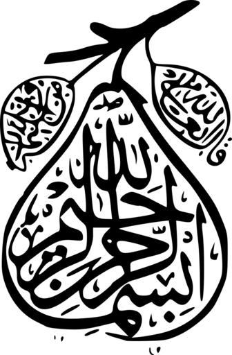 Keywords: Besm 01.svg Calligraphy of the Basmala phrase phrase bismi-llāhi ar-raħmāni ar-raħīmi بسم الله الرحمن الرحيم in in the form of a pear Converted to SVG from an old book scan created with Inkscape 1934 Aziz Efendi PD-old-70 Image Bismillah JPG Basmala in Arabic calligraphy Nevit Dilmen SVG Calligrams |