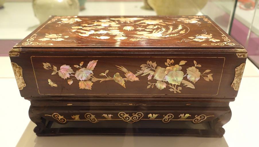 Keywords: Betel box, Northern Vietnam, 1945, wood inlaid with mother of pearl - Vietnamese Women's Museum - Hanoi, Vietnam - DSC04173.JPG en Exhibit in the Vietnamese Women's Museum Hanoi Vietnam Photography was permitted in the museum without restriction 2014-08-04 03 48 27 own Daderot other versions cc-zero Wooden containers in the Vietnamese Women's Museum Uploaded with UploadWizard |