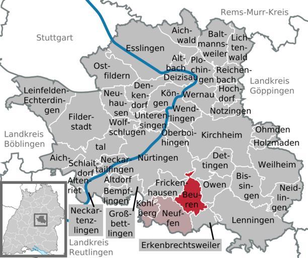 | Keywords: Beuren in ES.svg DeLocMaps Beuren Beuren bei Nürtingen Landkreis Esslingen District of Esslingen Esslingen district L'arrondissement d'Esslingen Arrondissement d'Esslingen Baden-Württemberg Bade-Wurtemberg Baden-Württemberg Adobe Illustrator <br/> own based on <br/> File Municipalities in Baden-Württemberg svg by TUBS<br/> File Baden-Württemberg HD district svg by TUBS 2010-04-22 Hagar66 based on work of TUBS Hagar66 Commonist Hagar66/licensesection Attribution TUBS/Credits Locator maps of municipalities in Landkreis Esslingen Beuren bei Nürtingen |