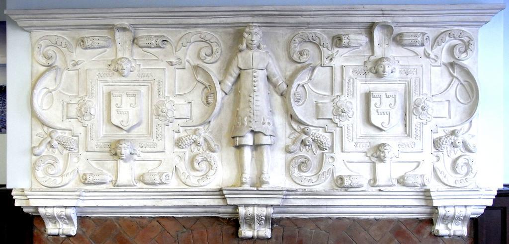 | Keywords: BevilGrenvilleOvermantleBideford.JPG en Plaster relief sculpted overmantle c 1643 1st Floor Room no 8A The Quay Bideford Devon Popularly supposed to be of Sir Bevil Grenville 1596-1643 of Bideford Devon and Stowe Kilkhampton Cornwall On either side of the figure within strapwork surrounds are escutcheons bearing the Grenville arms of Three clarions William Henry Rogers ˜Notes on Bideford ™ 1935 page 77 In the Board Room of the Gas Company ™s office is a plaster mantelpiece and frieze In the centre is a full-length figure of Sir Bevil GRENVILLE with the GRENVILLE arms on either side This mantelpiece was discovered when the house then the Three Tuns Tavern was dismantled and re-edified by the Gas Company The house was Sir Bevil ™s Town House and was known as ˜New Place ™ to distinguish it from ˜Old Place ™ the original manor house at the west end of the Bridge It has more recently c 2012 been dated to post 1660 and may therefore have come from the demolished Stowe House Kilkhampton Cornwall built by Sir Bevil's son Sir John Grenville 1st Earl of Bath 1628-1701 Examined by Peter Hood a leading authority on the English Civil War historical consultant to Bideford 500 Heritage Group and mastermind behind Torrington 1646 who stated that the coat which the man on the overmantle is wearing is called a ˜Dutchcoat ™ They originated from the Netherlands before the Civil War but were originally much shorter almost like a waistcoat It was only after the Restoration that a new design emerged of a much longer three-quarter length This is known as the ˜Jacobean Dutchcoat ™ and is what we see the figure wearing in this overmantle The shoes depicted here are also of a fashion from a period later than 1660 http //www nimrodresearch co uk/grenville/pdf/Grenville 20research pdf own photo photo by Lobsterthermidor <span class signature-talk >talk</span> 19 45 1 December 2012 UTC Plaster relief sculpture c 1643; photo 2012 Bevil Grenville Bideford Sculptures in Devon |