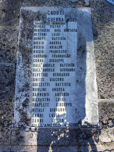 Keywords: BG 260 Endine monumento ai caduti.jpg it Endine Gaiano in provincia di Bergamo Monumento ai Caduti di tutte le guerre - elenco dei Caduti nella II Guerra Mondiale 1941-1945 own Albertomos 2009-07-16 nessuna ImageNote 1 204 52 405 925 864 1152 2 <center> CADUTI </center> 1940 GUERRA 1945 TRAPLETTI RINALDO BERLAI PIETRO BERTOCCHI GIOV BATTISTA BETTONI LUIGI BONETTI BATTISTA BOSIO ANDREA BOSIO ARIALDO BOSIO FRANCESCO CARRARA TRANQUILLO CORNA GIUSEPPE DALL ™ANGELO BATTISTA DALL ™ANGELO GIOVANNI ELVETICI BERNARDO GHITTI GIACOMO GUIZZETTI BATTISTA MORLINI ANDREA SARMENTI ANTONIO SILVESTRI LUIGI TRAPLETTI GIUSEPPE VITALI GIOVANNI ZANNI LUIGI ZANNI CIRILLO DALL ™ANGELO ANGELO ImageNoteEnd 1 Plaques in Endine Gaiano Monumento ai caduti Endine Gaiano |