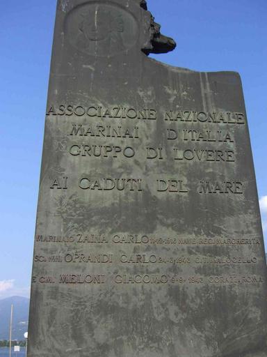 Keywords: BG-Lovere-060-caduti-del-mare.jpg it Lovere BG iscrizione sul monumento al Marinaio d'Italia in memoria dei caduti del mare a cura della Associazione Marinai d'Italia gruppo di Lovere own Albertomos 2009 nessuna ASSOCIAZIONE NAZIONALE MARINAI D'ITALIA GRUPPO DI LOVERE AI CADUTI DEL MARE marinaio ZAINA CARLO 11-12-1916 nave REG MARGHERITA sc mn OPRANDI CARLO 24-3-1943 c t MALOCELLO f cm MELONI GIACOMO 9-9-1943 corazz ROMA ImageNote 1 196 441 944 966 1224 1632 2 ASSOCIAZIONE NAZIONALE MARINAI D'ITALIA GRUPPO DI LOVERE AI CADUTI DEL MARE marinaio ZAINA CARLO 11-12-1916 nave REG MARGHERITA sc mn OPRANDI CARLO 24-3-1943 c t MALOCELLO f cm MELONI GIACOMO 9-9-1943 corazz ROMA ImageNoteEnd 1 Plaques in Lovere Monumento ai caduti del mare Lovere Associazione nazionale marinai d'Italia |