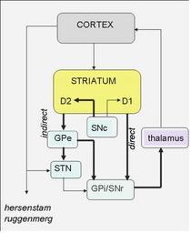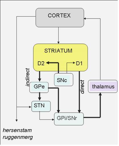 Keywords: BGA.PNG circuits binnen de basale ganglia Dikke lijnen inhiberende banen dunne lijnen exciterende banen Directe en indirecte paden zorgen samen voor een balans tussen excitatie en inhibitie van motorstructuren in de cortex nl wikipedia 2006-12-06 Albert Kok wikipedia nl Albert Kok original upload log page nl wikipedia BGA PNG 2006-12-06 14 47 Albert Kok 455×555×8 16810 bytes <nowiki></nowiki> Basal ganglia |