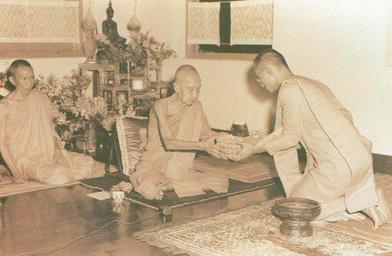 Keywords: Bhumibol Adulyadej entered a 15-day monkhood (14).jpg en Bhumibol Adulyadej entered a 15-day monkhood 1956-10-22 Bureau of the Royal Household Kingdom of Thailand author other versions Custom license marker 2016 10 15 PD-Thailand Bhumibol Adulyadej in 1956 Vajirañāṇavongs |