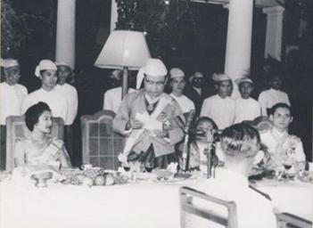 Keywords: Bhumibol Adulyadej, Sirikit and U Win Maung (03.03.1960).jpg th รับประทานอาหาร 1960-03-03 จดหมาย หตุ สด็จพระราชดำ นิน ยือนสหภาพพม่า ๒-๕ มีนาคม ๒๕๐๓ พิมพ์ปี ๒๕๒๙ สำนักพระราชวัง / รัฐบาลพม่า other versions Custom license marker 2016 10 03 PD-Thai PD-Burma Bhumibol Adulyadej in 1960 Sirikit |