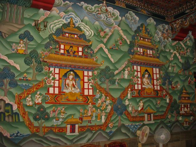 Keywords: Bhutan temple, Bodhgaya.jpg en Wall painting in the Bhutan temple Bodhgaya de Wandmalerei im Bhutan-Tempel Bodhgaya own Ineb-2553 2011-10 Bodhgaya Bihar Indien Bodh Gaya Bhutan Cc-zero