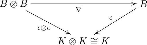 | Keywords: Bialgebra3.svg Created by Dave Rosoff using LaTeX2e and textogif Bialgebra3 png 2010-08-23 06 09 UTC Bialgebra3 png User Alodyne on http //en wikipedia org en wikipedia derivative work Snubcube <span class signature-talk >talk</span> Convert to SVG snubcube Bialgebra3 png LaTeX Source \documentclass article \usepackage xy \xyoption all \begin document \pagestyle empty \ \xymatrix B \otimes B \arrr_\nabla \arrd_ \epsilon \otimes \epsilon B \arld_\epsilon \\ K \otimes K \cong K \\ \ \end document other_versio</nowiki> Uploaded with derivativeFX Binary operations Coalgebra structures Commutative diagrams of binary operations Commutative triangles Images with LaTeX source code |
