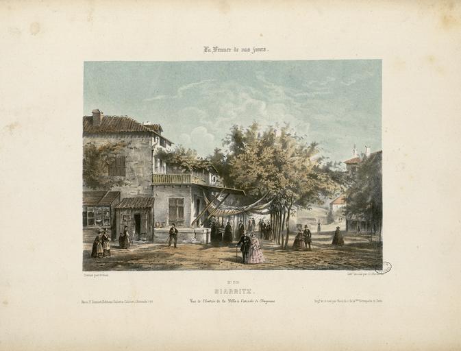 Keywords: Biarritz - Vue de l'Entrée de la Ville à l'arrivée de Bayonne - Fonds Ancely - B315556101 A MERCEREAU 7 059.jpg Impression en 3 coul par Frick frères à Paris Fait partie d'un ensemble de recueils de lithographies de Mercereau composés de lithographies provenant de La France de nos jours vaste suite publiée par livraisons de 1853 à 1876 et comprenant 475 planches en deux tirages l'un à deux teintes noir et bistre l'autre en couleurs Les libraires ont réuni ces planches en albums de composition variable quant au nombre de planches et aux dessinateurs Asselineau Mercereau Maurice Deroy etc Un titre Les Pyrénées par Ch Mercereau; Bagnères-de-Luchon par Ch Mercereau était frappé sur le plat supérieur de la reliure de l'album ainsi que le nom du Libraire pour lequel il était réalisé La plupart des recueils de ces planches pyrénéennes portent le nom de Sajous libraire à Bagnères-de-Luchon Pl 1 à 18 numérotées de 370 à 386 Pl 374 pl 5 et 6 en double -- Pl 19 20 et 21 numérotées respectivement 407 415 et 418 Ces trois pl ont été dessinées et lithographiées par Asselineau -- Pl 22 23 et 24 numérotées 438 439 et 440 -- Pl 22 lith par Aubrun -- Pl 25 numérotée 441 -- Pl 26 à 40 numérotées de 327 à 341 -- Pl 41 à 46 numérotées de 363 à 368 -- Pl 47 numérotée 369 -- Pl 48 num 292 -- Pl 49 et 50 num 264 et 265 -- Pl 51 et 52 num 268 et 269 -- Pl 53 à 55 num de 293 à 295 -- Pl 56 num 300 -- Pl 57 à 59 num de 307 à 309 -- Pl 60 à 70 num de 316 à 326 -- Pl 71 num 63 dessin et lith d'Asselineau imprimerie Destouches -- Pl 72 et 73 num 87 et 88 dessin et lith d'Asselineau imprimerie Destouches -- Pl 74 num 124 signée Lebreton éditée chez Lalonde à Paris et imprimée chez Becquet frères à Paris -- Pl 75 num 161 dessin et litho d'Asselineau imprimerie Destouches --Pl 76 à 78 num de 207 à 209 -- Pl 79 à 81 num de 211 à 213 -- Pl 82 num 220 dessin et lith de Maurice imprimerie Destouches -- Pl 83 à 86 num de 226 à 229 -- Pl 87 et 88 num 234 et 235 -- Pl 89 à 91 num de 273 à 275 -- Pl 92 et 93 num 290 et 291 Pièces jointes 6 pl sépia dont certaines sont des doubles du recueil de Mercereau Les cinq premières planches sont numérotées respectivement 318 321 324 331 386 La dernière planche n'est pas extraite de La France de nos jours mais de L'Espagne pittoresque et monumentale Ces six planches sont signées Mercereau éditées chez Sinnet et imprimées chez Frick frères Ancely René 1876 - 1966 Possesseur fre public domain domaine public B315556101_A_MERCEREAU_7_059 jpg image/jpeg 1 f de pl lithogr ; 32 cm oblong Frick frères Imprimeur Sinnet F Éditeur Mercereau Charles 1822-1864 Lithographe http //numerique bibliotheque toulouse fr/collect/general/index/assoc//ark /74899/B315556101_A_MERCEREAU_7_059 dir/B315556101_A_MERCEREAU_7_059 jpg Bibliothèque municipale de Toulouse A-MERCEREAU 7-59 Creator Gaspard Gobaut http //catalogues toulouse fr/web2/tramp2 exe/do_keyword_search/log_in setting_key BMT1 servers 1home query p001683 St Jean-de-Luz intérieur de l'Eglise St Jean-de-Luz le Château de l'Infante Biarritz Vue générale prise du Phare Château de Mauvesin près Bagnères-de-Bigorre Hautes Pyrénées Bagnères de Bigorre Hautes Pyrénées - Intérieur de l'Eglise des Carmes en couleurs Bagnères de Bigorre Hautes Pyrénées - Intérieur de l'Eglise des Carmes Bagnères-de-Bigorre - Eglise et couvent des Carmes Bagnères-de-Bigorre Hautes-Pyrénées - Tour des Jacobins Cascade et Pont de Magenta Vallée de l'Esponne Hautes Pyrénées Cascade de Trémes-Aïgues Vallée de Grip Hautes Pyrénées St Sauveur Hautes Pyrénées - Le Pont Napoléon Bayonne - Eglise St André Arreau et la Vallée d'Aure Hautes Pyrénées - Vue prise au dessus de la route du Col d'Aspin Auch - Vue prise sur les bords du Gers Auch - Vue de la Cathédrale Auch - Intérieur de la Cathédrale Bagnères-de-Bigorre - Vue Générale prise de la Fontaine ferrugineuse Eaux-Bonnes Basses-Pyrénées - L'établissement Thermal et la Chapelle Nantes - Vue de l'Eglise Ste Croix Le Croisic - Plage des Baigneurs et Etablissement de Bains Le Folgoët - Vue de l'Eglise Brèche de Roland prise de Gèdres Hautes Pyrénées Eglise des Templiers à Luz Chapelle du couvent de Pouëlahun i e Pouey Lahun - Vallée d'Azun Hautes Pyrénées Le Pont de Scia - Route de Luz à Gavarnie Hautes-Pyrénées Vue de l'établissement de la Raillière près Cauterets Hautes-Pyrénées Vue générale de Cauterets prise du Mamelon Vert Hautes-Pyrénées Vue du Fort de Lourdes Hautes-Pyrénées Vue d'Argelès-de-Bigorre Hautes-Pyrénées Vue de St Sauveur Hautes-Pyrénées Le Pas de l'Echelle Route de Gavarnie Hautes-Pyrénées Fond de la Vallée d'Argelès prise de la terrasse de St Savin Hautes-Pyrénées Place Grammont à Pau Basses-Pyrénées Vue générale des Eaux-Bonnes Basses-Pyrénées Barèges et la Vallée du Bastan Hautes-Pyrénées Chute supérieure du Pont d'Espagne Hautes-Pyrénées La grotte miraculeuse à Lourdes Hautes-Pyrénées Eglise de Bétharram et Pont de Lestelle Basses Pyrénées Cascade du Cerizet Près Cauterets Hautes-Pyrénées Pic du Midi d'Ossau 2885m Basses Pyrénées - Vue prise du 3e plateau de Bious-Artigues Toulouse - Cloître du Musée et Clocher des Augustins Pau - Vue prise de la terrasse du Château Pau - Vue du Château prise du Parc Toulouse - Cloître du Musée Galerie du Moyen-Age Toulouse - La maison de pierre fragment de la façade Toulouse - Intérieur de St Sernin St Jean-de-Luz Fort du Socoa Toulouse - Vue du Capitole Bordeaux Vue de la Porte du Caillau i e Cailhau Bordeaux Porte de la grosse Cloche Bordeaux Vue des Quinconces Bordeaux - Vue de la Tour et de l'Eglise de St Michel Toulouse - Vue du Pont de pierre prise du Quai de Brienne Toulouse - Abside de l'Eglise de St Sernin de l'an 1097 Toulouse - Choeur de la Cathédrale St Etienne Rouen - Hôtel de Bourgtheroulde Biarritz - Vue des Bains Napoléon et du Casino Biarritz - Vue des Bains d