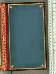| Keywords: Bibliotheca Graeca et Latina - Flyleaf (G406).jpg Style Armorial Leaf; Caption Flyleaf; Colour Red; Edge Gilt exhibition history Decorative Technique Tooled in gold; Cover Material Goatskin includes morocco turkey etc Green silk ribbon marker Doublures of coated blue paper and turn ins tooled in gold Ink ms note saying the book was given by Spencer to Thomas Grenville in 1802 Grenville's coat of arms in gold is pasted to the upper doublure object history Text 1784; Berlin; Grenville Thomas 1755-1846 Spencer George John Second Earl Spencer 1758-1834 object type Cc-zero place of creation Binding England place of discovery To research armorials see British Armorial Bindings Database sponsored jointly by the Bibliographical Society and the University of Toronto http //armorial library utoronto ca British Library image http //www bl uk/catalogues/bookbindings/LargeImage aspx RecordId 020-000014349 ImageId ImageId 53459 Copyright BL Bibliotheca Graeca et Latina Uploaded with GWToolset Bibliotheca Graeca et Latina - Flyleaf G406 http //www webarchive org uk/bldatasets/bindings/G406fly jpg 19th-century bookbinding Bookbinding British Library Bookbindings |