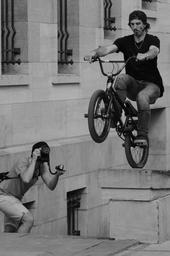 Keywords: bicycle bmx sports spectacular man people stunt photographer withdrawal