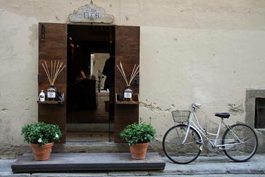 Keywords: bicycle door blinds vintage street exterior