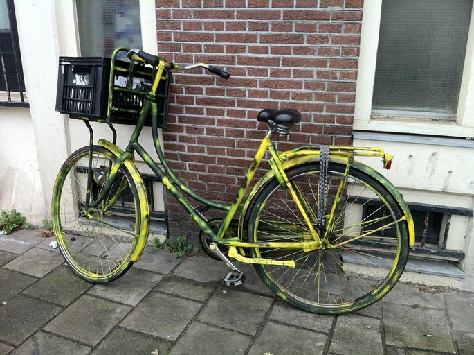Keywords: bicycle old bike retro vintage transportation yellow green