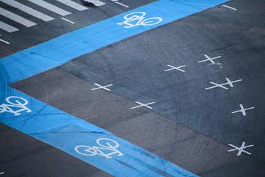 Keywords: bicycle path junction bike cyclists road away blue note