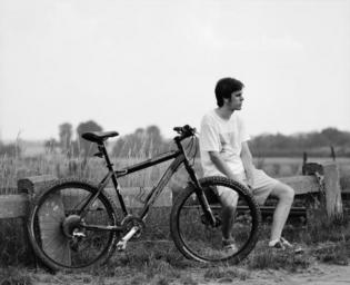Keywords: bicycle rest black and white young sport bike nature activity cycle thinking alone sitting