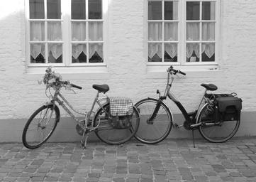 Keywords: bicycles bruges facade walk corner solo take it easy public bike transport window