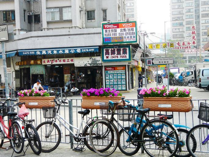 Keywords: bicycles street view flower old town city yuan lang hong kong china