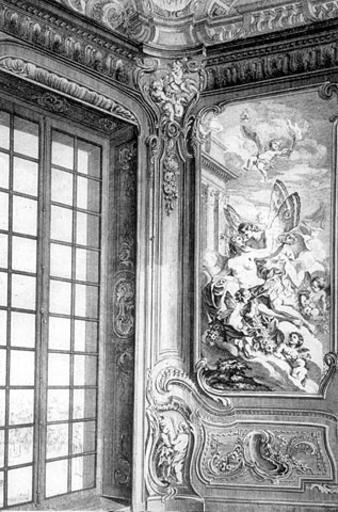 | Keywords: Bieliński Palace 02.jpg Decoration of a room in the Bieliński Palace in Warsaw Dekoracja gabinetu w Pałacu Bielińskich w Warszawie engraving paper cm 54 34 Wrocław Institution National Ossoliński Institute Wrocław Perhaps the most unrestrained of all rococo interiors with painted panels representing Zephyr and Flora and Venus and Adonis pier-glasses and a painted ceiling decorated with the chariot of the Sun Muses and groups of emblematic of the Arts and Sciences Engraving from the Oeuvre de Juste Aurèle Meissonnier Inscriptions Cabinet de Mr le Comte Bielenski Grand Marechal de la Couronnede / J A Meissonnier inv Chenu Sculp /A Paris chés Huquier rue St Jacque au coin de celle des mathurins C P R Władysław Łoziński 1958 Życie polskie w dawnych wiekach Wydawnictwo Literackie ca 1745 Pierre Chenu after Copyright expired PD-Art Other versions PD-old-100 Juste-Aurèle Meissonnier Prints in the Ossolineum in Wrocław Bieliński Palace in Warsaw Pierre Chenu |