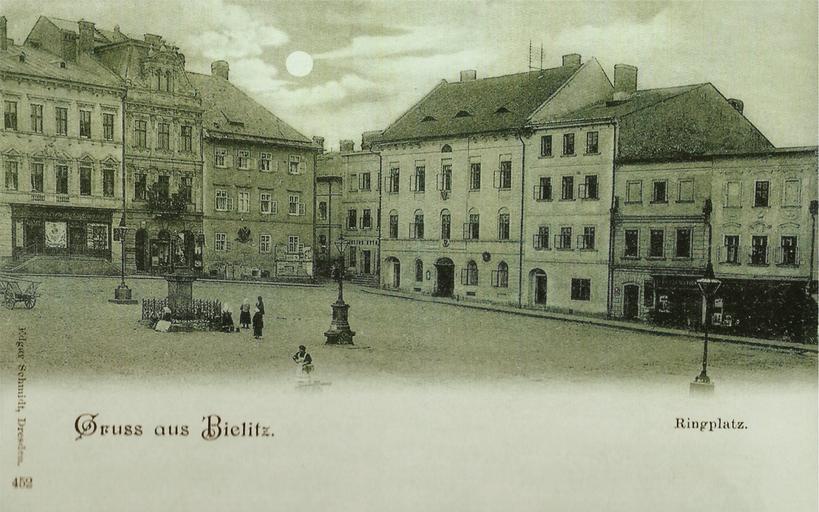 Keywords: Bielsko-Biała Rynek 002.JPG Rynek w Bielsku-Białej północno-zachodni narożnik Rynku Bielsko-Biała Nordwestecke des Platzes Scan aus dem Buch Monika Ćwikowska-Broda und Wiesław Ćwikowski Bielsko-Biała i okolice - historia pocztówka pisana / Bielitz-Biala und Umgebung - Geschichte mit Ansichtskarten geschrieben / Bielsko-Biała and Surroundings - The History Depicted by Postcards Oficyna Wydawicza M-C Bielsko-Biała ISBN 978-83-926877-0-2 Verlag E Schmidt Dresden ~ 1898 PD-old Market Square in Bielsko-Biała Old Postcards of Bielsko-Biała 1898 postcards |