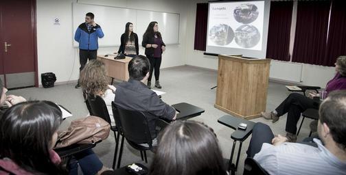 Keywords: indoor Bienvenida a los alumnos nuevos de Agronomía, donde alumnos que hicieron su practica este verano en islas Malvinas (Falklands) realizaron una presentación de sus experiencias. Bienvenida a los alumnos nuevos de Agronomía, donde alumnos que hicieron su practica este verano en islas Malvinas (Falklands) realizaron una presentación de sus experiencias.
