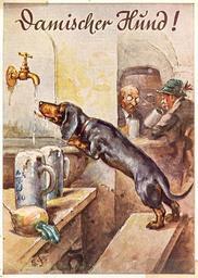 Keywords: Bierdackel.jpg Humor-Karte Münchener Bildkunstverlag August Lengauer München ca 1935 Privatbesitz 2006-06-27 own assumed Richard Huber Culture of Bavaria Dachshunds in art 20th-century paintings of dogs