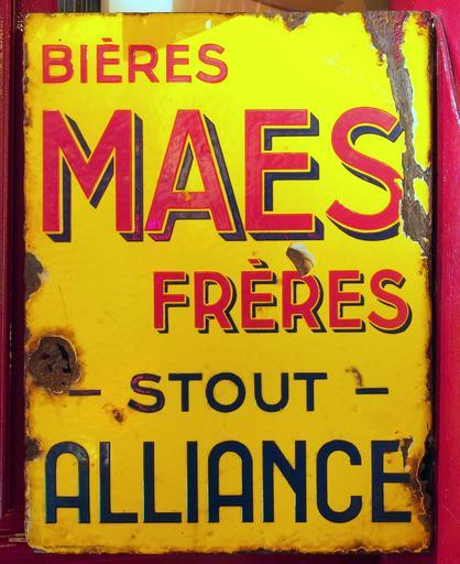 Keywords: Bières Maes Frères Stout Alliance enamel advertising signs.JPG Photographed at the Bierreclame Museum Haagweg Breda The Netherlands Very old advertisment of a beer company that does not exist any more own 2014-11-16 13 53 46 Alf van Beem CC-zero Trademarked Bierreclame Museum Haagweg Enamel beer advertising signs |