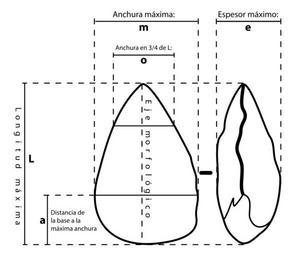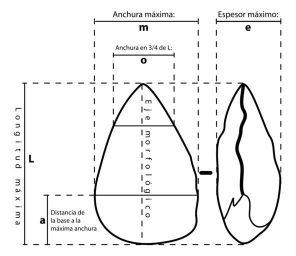 Keywords: Bifaz dimensiones.svg of an acheulean hand axe Dimensiones básicas para describir un bifaz achelense Mensurations basiques pour un biface acheuléen own 2007-01 José-Manuel Benito Álvarez España > Locutus Borg en Hand axe fr Biface es Bifaz Acheulean Drawings of stone hand axes |