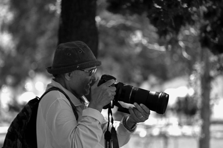 Keywords: blackandwhite black white bw monochrome street streetphotography downtown canada britishcolumbia bc okanagan kelowna summer man male guy person camera lens hat contrasts tones