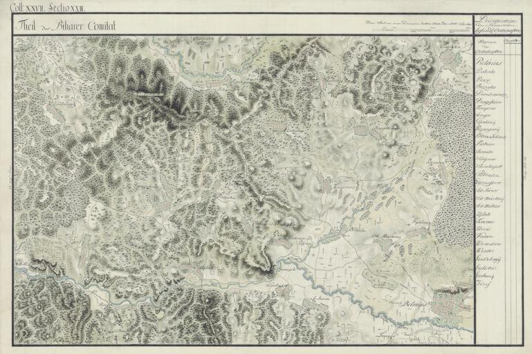 | Keywords: BihorSolnocCrasna Josephinische Landesaufnahme pg27-23.jpg wikitable style margin 1em auto 1em auto width 80 Name shown on the map<br>Nume din hartă Administrative unit<br>Unitate administrativă Romanian name<br>Numele românesc Hungarian name<br>Numele unguresc German name<br>Numele german Country today<br>Ţara de astăzi - Belénies Bihar Beiuş Belényes Romania - Pokola Bihar Pocola Biharpoklos Pokola Romania - Borza Bihar Borz Borz Romania - Preszaka Bihar Prisaca Presaca Gyepüpataka Preszáka Romania - Dombravicza Bihar Dumbrăviţa Dumbrăviţa-mică Kisdombró Kisdombravica Kisdombrovica Romania - Dragostian Bihar Drăgoteni Dragoteni Drágota Dragottyán Romania - Fenyeres Bihar Feneriş Fenyéres Feneres Romania - Fenyes Bihar Romania - Gÿalánÿ Bihar Delani Gyalány Tövisfalva Romania - Ropaganÿ Bihar Răbăgani Lazuri Răbăgani Gara Mureşeni Robogány Romania - Petras Solimos Bihar Şoimuş Şoimuş-Petreasa Şoimuş-Petroasa Gyepüsolymos Solymospetrász Petrászsolymos Oláhsolymos Felsősolymos Solymos Romania - Pietran Bihar Petreasa Şoimuş Şoimuş-Petreasa Gyepüsolymos Solymospetrász Petránsolymos Romania - Remete Bihar Remetea Magyarremete Belsőremete Belényesremete Remete Romania - Solÿmos Bihar Şoimuş-Petreasa Gyepüsolymos Romania - Shinkujest Bihar Şuncuiş Şoncoiuş Belényessonkolyos Sonkolyos Romania - Petrasza Bihar Petreasa Romania - Gÿozanforro Bihar Forău Josani-Forău Belényesforró Dzsoszánforró Romania - Szt János Bihar Ioaniş Ivăneşti Körösjánosfalva Jánosfalva Romania - Szt Mártonÿ Bihar Sânmartin de Beiuş Sânmărtin Sânmartinul de Beiuş Belényesszentmárton Szentmárton Romania - Szt Miklos Bihar Sânnicolau de Beiuş Sânmiclăuş Belényesszentmiklós Szentmiklós Romania - Ujlak Bihar Uilacu de Beiuş Uilacul Beiuşului Uileac-de-Beiuş Uilac Belényesújlak Romania - Tsosan Bihar Josani-Gurbeşti Gorbolyfalva Romania - Urvis Bihar Urviş de Beiuş Urviş Urvis Belényesörvényes Középörvényes Alsóörvényes Romania - Valán Bihar Vălanii de Beiuş Petrani-Vălani Belényesvalány Romania - Weresan Bihar Vărăşeni Crişeni-Vărăşeni Veresfalva Varosány Romania - Wenter Bihar Vintere Vintire Vintiri Venter Magyarventer Oláhventer Pusztaventer Kápolnásventer Romania - Szaldobagÿ Bihar Săldăbagiu Mic Săldăbagiu de Beiuş Săldăbagiu Sălişte-Săldăbagiu Körösszáldobágy Szelistyeszáldobágy Romania - Szelistie Bihar Sălişte de Pomezeu Sălişte-Pomezeu Sălişte-Pomezău Sălişte Papmezőszeleste Papmezőszelistye Mezőszeleste Mezőszelistye Romania - Szokanÿ Bihar Săucani Szokány Szőkefalva Romania - Füzes Bihar Fiziş Füzegy Romania - Bihor County 1782-85 Josephinische Landesaufnahme pg 27-23 Harta Iosefină a Comitatului Bihor 1782-85 Josephinische Landesaufnahme pg 27-23 Österreichisches Staatsarchiv Kriegsarchiv Historische Militärkarte der österreichisch-ungarischen Monarchie 1782-1785 PD-old-100 Clickable Map of the Bihor Solnoc Crasna County BihorSolnocCrasnaCountyJosephinischeLandesaufnahme1782-85 Josephinische Landaufnahme |