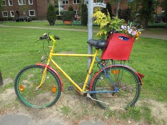 Keywords: bike flowers flower bed spring colorful decoration city idea