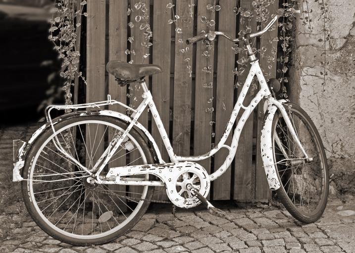 Keywords: bike lady's bike old nostalgic antique wheel nostalgia passed