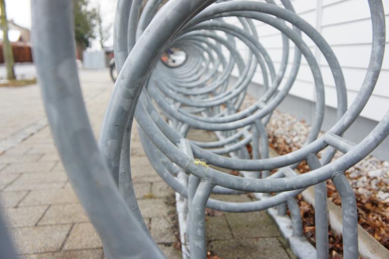 Keywords: bike racks circle stand parking possibility steel metal grey close