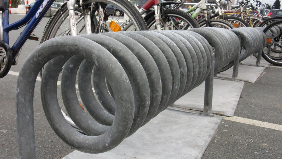 Keywords: bike racks tube wrapped metal zinc plated coiled helix screw line