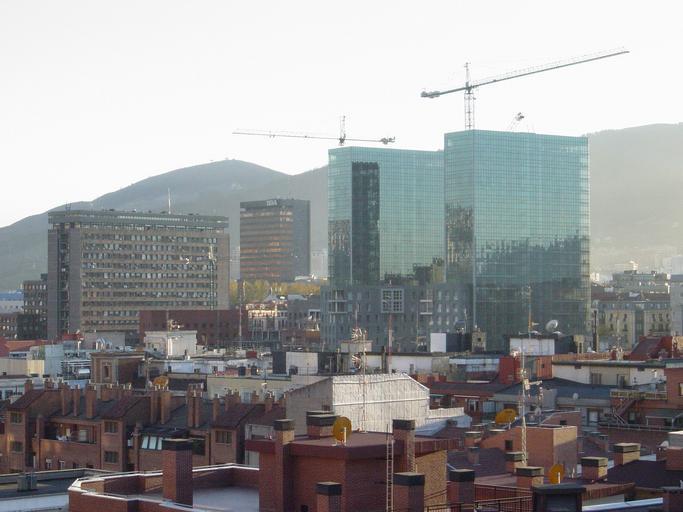 | Keywords: Bilbao 03746.JPG Skyline of Bilbao In the foreground roofs of Campo Volantín; in the center tower of Banco Bilbao Vizcaya Argentaria; at the right Isozaki Atea twin towers Skyline de Bilbao Abajo en primer plano tejados de Campo Volantín en el centro torre del Banco Bilbao Vizcaya Argentaria; a la derecha torres gemelas de Isozaki Atea Torre Banco de Vizcaya Isozaki Atea 2006 in Bilbao |