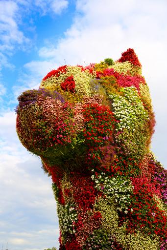 Keywords: bilbao art colors dog statue flowers spain artwork