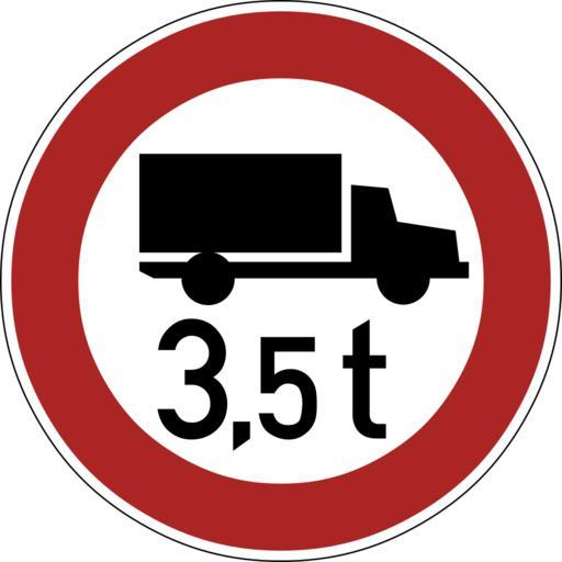Keywords: Bild 13a - Verkehrsverbot für Lastkraftfahrzeuge über ein bestimmtes zulässiges Gesamtgewicht, StVO 1956.svg de Bild 13a Verkehrsverbot für Lastkraftfahrzeuge über ein bestimmtes zulässiges Gesamtgewicht Für den Rotton wurde das RAL-Farbtonregister 840 R gewählt Der dort verzeichnete Ton ist in der Abbildung wiedergegeben Verkehrszeichen nach den Vorgaben der StVO in der Fassung vom 29 März 1956 Quelle Bundesgesetzblatt Jahrgang 1956 Nr 19 S 355 Tag der Ausgabe Bonn 29 Mai 1956 own Mediatus 2013-09-06 v Cc-zero PD-VzKat Diagrams of regulatory road signs of Germany 1956 set 13a Limited weight prohibitory road signs |