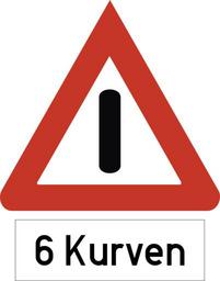 Keywords: Bild 1 - Allgemeine Gefahrstelle mit Zusatztafel 6 Kurven.svg de Bild 1 - Allgemeine Gefahrstelle mit Zusatztafel 6 Kurven Diese Zeichenkombination ist für 1938 belegt Quelle K Pfanstiel Hrsg žLehrbuch für Kraftfahrer aller Klassen Degener Verleg 1938 S 61 Dem Rotton des Warnzeichens wurde die Farbkarte RAL 840 B 2 zugrundegelegt die im Juni 1932 eingeführt worden ist K Pfanstiel Hrsg žLehrbuch für Kraftfahrer aller Klassen Degener Verleg 1938 S 61 Interpretiert und gezeichnet von Mediatus Die hier gezeigte Schriftype ist eine ebenfalls von Mediatus entwickelte Variante aus historischen Zeichen Mediatus 2016-07-15 Herstellungsdatum other fields + Signs User Mediatus/no-new-version Cc-zero PD-Vz historisch German language signs 01 svg SVG road signs in Germany 01 Diagrams of additional signs of Germany 1938 set 01 Diagrams of triangular warning road signs with |