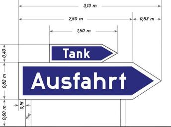 Keywords: Bild 3 - Ausfahrt mit Zusatzschild Tank, RAB T1 Jwkb 286, 1939.svg de Bild 3 Pfeilschild žAusfahrt mit Zusatzschild žTank nach der Anlage zur technischen Vorschrift Reichsautobahn T-1 Jwkb 286 vom 12 August 1939 Dort wird das Schild als žBild 3 bezeichnet Die Originalbemaßung aus der in der Vorschrift abgebildeten Skizze wird hier vollständig wiedergegeben Nähere Maßangaben zur Breite der weißen Umrandung oder zur Schriftgröße werden nicht gemacht Der Blauton entstammte der RAL-Farbkarte 840 b2 und war 32 h Nach dem Krieg galten die Reichsautobahn-Vorkriegsbestimmungen noch einige Zeit als Bundesgesetz weiter Vorschrift Reichsautobahn T-1 Jwkb 286 vom 12 August 1939 gezeichnet und interpretiert durch Mediatus Mediatus 2015-08-24 other fields + Signs User Mediatus/no-new-version Cc-zero PD-Vz historisch SVG road signs in Germany German language signs Diagrams of motorway road signs of Germany 1939 set Reichsautobahn signs Blue and white signs |