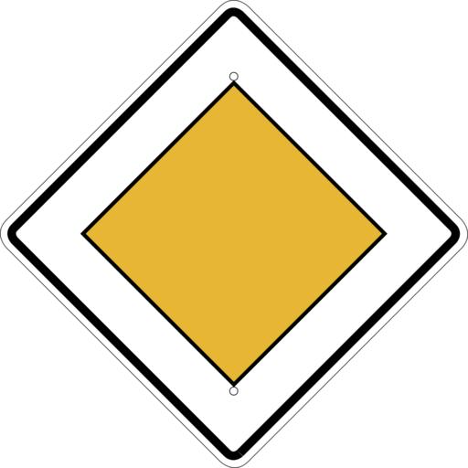 Keywords: Bild 47 - Zeichen für die Hauptverkehrsstraße, StVO DDR 1964.svg de Bild 47 Zeichen für die Hauptverkehrsstraße StVO DDR 1964 Verkehrszeichen der Deutschen Demokratischen Republik nach der Straßenverkehrsordnung StVO von 1964 <br /> Die Ausführung dieses Schildes richtet sich nach den im April 1967 bekanntgegebenen Normen TGL 10629 Blatt 2 Leiteinrichtungen für den Straßenverkehr “ Verkehrszeichen “ Schilder und TGL 10629 Blatt 3 Leiteinrichtungen für den Straßenverkehr “ Verkehrszeichen “ Symbole Farbe Schrift Die Farbgrenzen werden deffiniert nach der im Februar 1967 bekanntgegebenen Norm TGL 20684 Blatt 6 Signallichter “ Farben und Farbgrenzen im Verkehrs “ Ortsfeste Signallichter im Straßenverkehr Alle zwei genannten Normen wurden am 01 01 1968 verbindlich TGL 20684 Blatt 6 war ein Ersatz für die ältere Norm TGL 06163 vom November 1962 die bei Einführung der StVO von 1964 galt Damals hatte es noch keine durch die CIE-Normfarbtafel festgelegten Farbgrenzen gegeben Die normierten Bohrlöcher im Schild nach TGL 10629 Tabelle 2 sind behördlich vorgeschrieben und daher unverzichtbarer Bestandteil bei diesen Verkehrszeichen und werden somit in der Abbildung wiedergegeben Anwendung fand bei der Einführung dieser StVO noch die Typfarbkarte 5/62 und ab dem 01 10 1969 die verbindlich eingeführte Farbkarte nach TGL 21196 TGL 21196 vom Januar 1969 Anstrichstoffe “ Farbregister Typfarbkarte 5/62 Rot 3000 RAL-Farbtonregister 840 R 3000 TGL 21196 1969 0605 žSignalrot Lab L 44 78 a 50 80 b 26 62 Zur CIELab-Umwandlung siehe TGL 21196 Juni 1987 Anstrichstoffe “ Farbregister “ Vorzugsfarben own Mediatus 02 März 2016 Herstellungsdatum other fields + Signs User Mediatus/no-new-version Cc-zero PD-Vz historisch SVG road signs in East Germany |