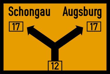Keywords: Bild 48 - Vor-Wegweiser, StVO 1953.svg de Bild 48 Vor-Wegweiser Verkehrszeichen nach den Vorgaben der StVO in der Fassung vom 24 August 1953 Das Schild war 1250 x 850 mm groß der schwarze Rand wie bei der Ortstafel 40 mm breit Quelle Bundesgesetzblatt Jahrgang 1953 Nr 56 S 1234 Tag der Ausgabe Bonn 3 September 1953 Bundesgesetzblatt Jahrgang 1953 Nr 56 S 1234 gezeichnet als auch interpretiert durch Mediatus Mediatus 2013-08-28 other fields + Signs User Mediatus/no-new-version Cc-zero PD-Vz historisch SVG road signs in Germany 48 svg German language signs 48 svg Diagrams of information road signs of Germany 1953 set 48 svg |