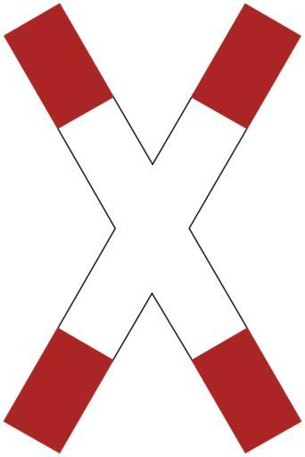 | Keywords: Bild 4 e - Warnkreuz für unbeschrankten eingleisigen Bahnübergang, StVO 1953 und 1956.svg  de Bild 4 e Warnkreuz für unbeschrankten eingleisigen Bahnübergang Als Rot wurde das RAL-Farbtonregister 840 R gewählt Verkehrszeichen nach den Vorgaben der StVO in der Fassung vom 24 August 1953 Quelle Bundesgesetzblatt Jahrgang 1953 Nr 56 S 1222 Tag der Ausgabe Bonn 3 September 1953 Identisch in Bundesgesetzblatt Jahrgang 1956 Nr 19 S 352 Tag der Ausgabe Bonn 29 Mai 1956 own gezeichnet durch Mediatus Mediatus 2013-08-28 v Cc-zero PD-VzKat Diagrams of danger warning road signs of Germany 1953 set 04e Diagrams of danger warning road signs of Germany 1956 set 04e Diagrams of railway road signs of Germany 1961 set Zeichen 201 SVG road signs in Germany |