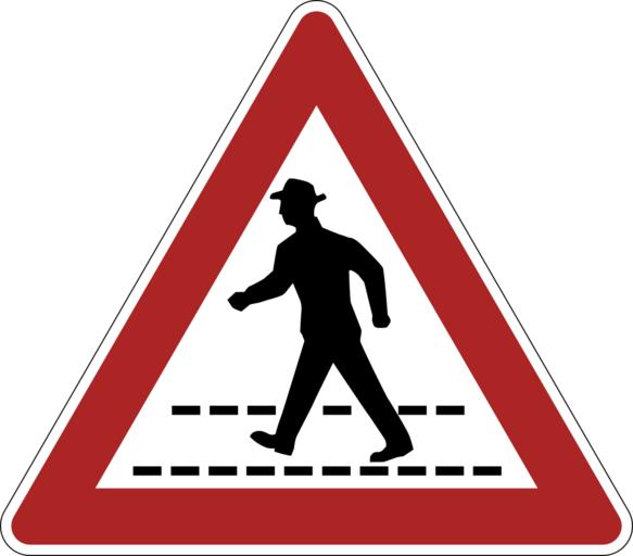 | Keywords: Bild 4 a - Fußgängerüberweg, StVO 1956.svg  de Bild 4 a Fußgängerüberweg Für den Rotton wurde damals das RAL-Farbtonregister 840 R gewählt Der dort verzeichnete Ton ist in der Abbildung wiedergegeben Zeichen dieser Art wurden bis 1966 hergestellt Verkehrszeichen nach den Vorgaben der StVO in der Fassung vom 29 März 1956 Quelle Bundesgesetzblatt Jahrgang 1956 Nr  19 S  352 Tag der Ausgabe Bonn 29 Mai 1956 fr L'ancien panneau piétons 1956 “1966 Bundesgesetzblatt Jahrgang 1956 Nr  19 S  352; gezeichnet und interpretiert durch Mediatus Mediatus 2013-09-16 other fields + Signs User Mediatus/no-new-version Cc-zero PD-Vz historisch Diagrams of danger warning road signs of Germany 1956 set 04a svg Pedestrian crossing warning signs 04a svg SVG road signs in Germany 04a svg |