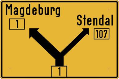 Keywords: Bild 54 c - Vorwegweiser zu Straßenkreuzungen und Abzweigungen, StVO DDR 1964.svg de Bild 54 c Vorwegweiser zu Straßenkreuzungen und Abzweigungen StVO DDR 1964 Verkehrszeichen der Deutschen Demokratischen Republik nach der Straßenverkehrsordnung StVO von 1964 <br /> Die Ausführung dieses Schildes richtet sich nach den im April 1967 bekanntgegebenen Normen TGL 10629 Blatt 2 Leiteinrichtungen für den Straßenverkehr “ Verkehrszeichen “ Schilder und TGL 10629 Blatt 3 Leiteinrichtungen für den Straßenverkehr “ Verkehrszeichen “ Symbole Farbe Schrift Die Farbgrenzen werden deffiniert nach der im Februar 1967 bekanntgegebenen Norm TGL 20684 Blatt 6 Signallichter “ Farben und Farbgrenzen im Verkehrs “ Ortsfeste Signallichter im Straßenverkehr Alle zwei genannten Normen wurden am 01 01 1968 verbindlich TGL 20684 Blatt 6 war ein Ersatz für die ältere Norm TGL 06163 vom November 1962 die bei Einführung der StVO von 1964 galt Damals hatte es noch keine durch die CIE-Normfarbtafel festgelegten Farbgrenzen gegeben Die normierten Bohrlöcher im Schild nach TGL 10629 Tabelle 2 sind behördlich vorgeschrieben und daher unverzichtbarer Bestandteil bei diesen Verkehrszeichen und werden somit in der Abbildung wiedergegeben Anwendung fand bei der Einführung dieser StVO noch die Typfarbkarte 5/62 und ab dem 01 10 1969 die verbindlich eingeführte Farbkarte nach TGL 21196 TGL 21196 vom Januar 1969 Anstrichstoffe “ Farbregister Typfarbkarte 5/62 Rot 3000 RAL-Farbtonregister 840 R 3000 TGL 21196 1969 0605 žSignalrot Lab L 44 78 a 50 80 b 26 62 Zur CIELab-Umwandlung siehe TGL 21196 Juni 1987 Anstrichstoffe “ Farbregister “ Vorzugsfarben own Mediatus 03 März 2016 Herstellungsdatum other fields + Signs User Mediatus/no-new-version Cc-zero PD-Vz historisch SVG road signs in East Germany 54c svg Diagrams of direction road signs of East Germany 1964 set 54c svg |